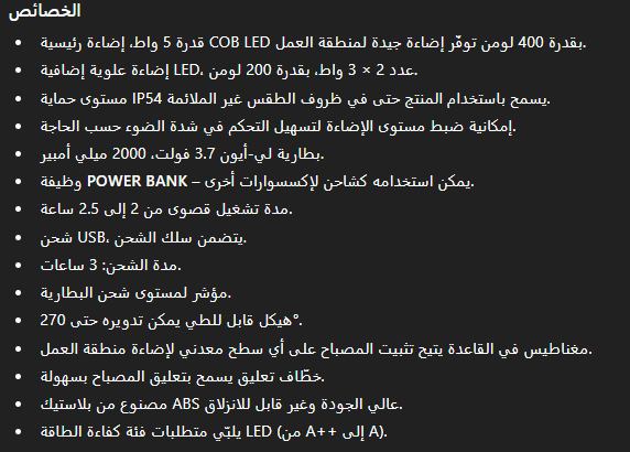 اسم المنتج مصابح للورش LED 3.7 فولت