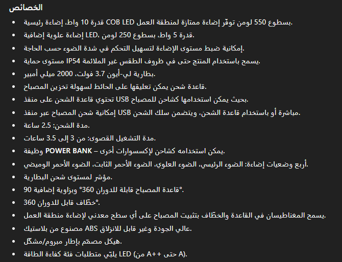 اسم المنتج مصباح ورش مع قاعدة شحن 3.7 فولت