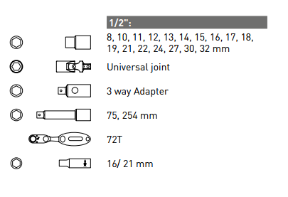 اسم المنتج طقم طرطيقة وبكسات 1/2" 24 قطعة