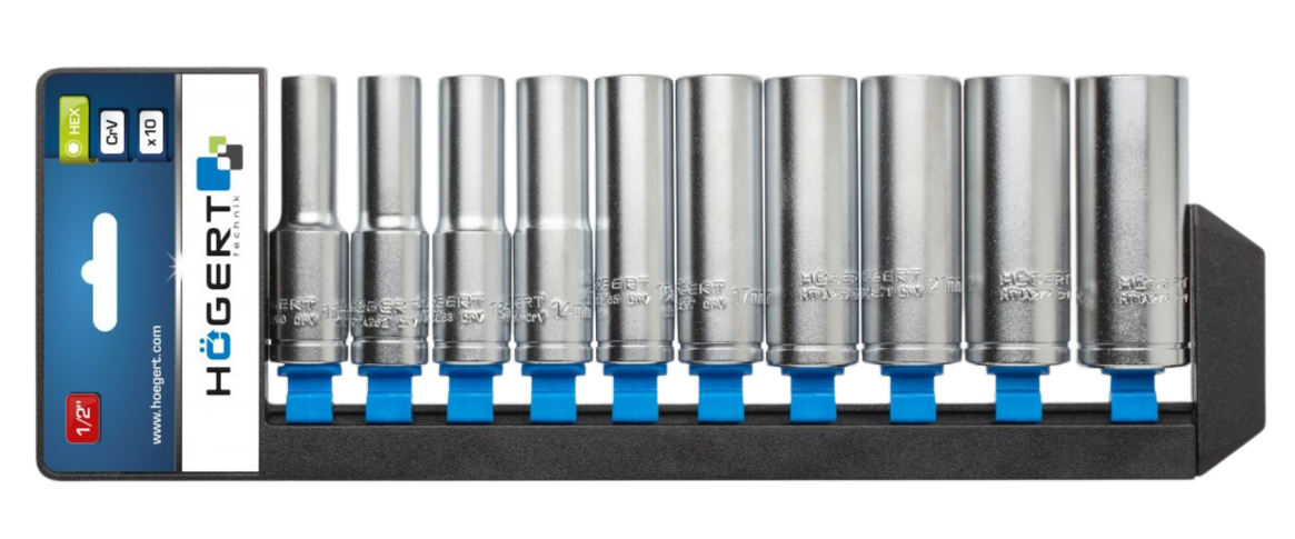 طقم سكة بكسات 1/2" مسدس ابيض طويل 10 قطع