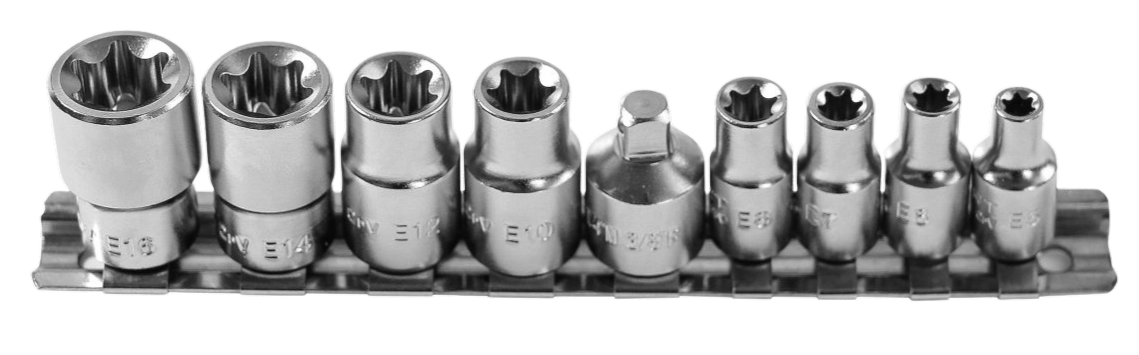 طقم سكة بكسات 1/2" توركس قصير 9 قطع