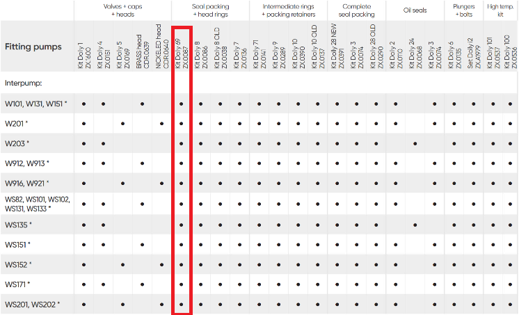 طقم جلود لمضخة انتربمب WS201, WS202, W151 واشباهها، الرجاء قراءة الجدول المرفق اعلاه في الصور
