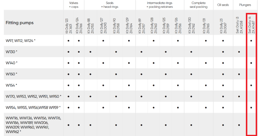 بستون سيراميك لمضخة انتربمب الموديلات المدعومة مرفقة بالصورة اعلاه