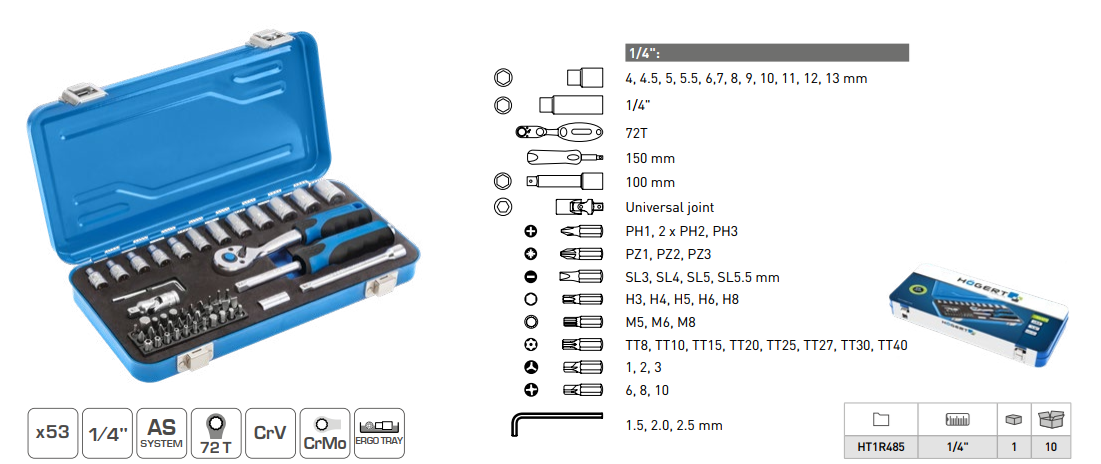 طقم طرطيقة وبكسات 1/4" 53 قطعة