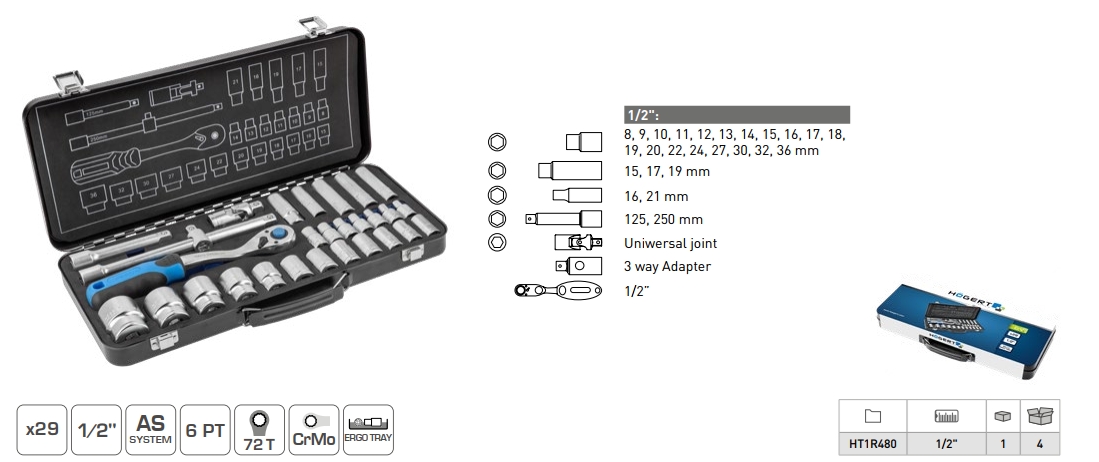 طقم طرطيقة وبكسات 1/2" 29 قطعة