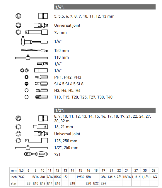 طقم طرطيقة وبكسات 1/2", 1/4" 60 قطعة