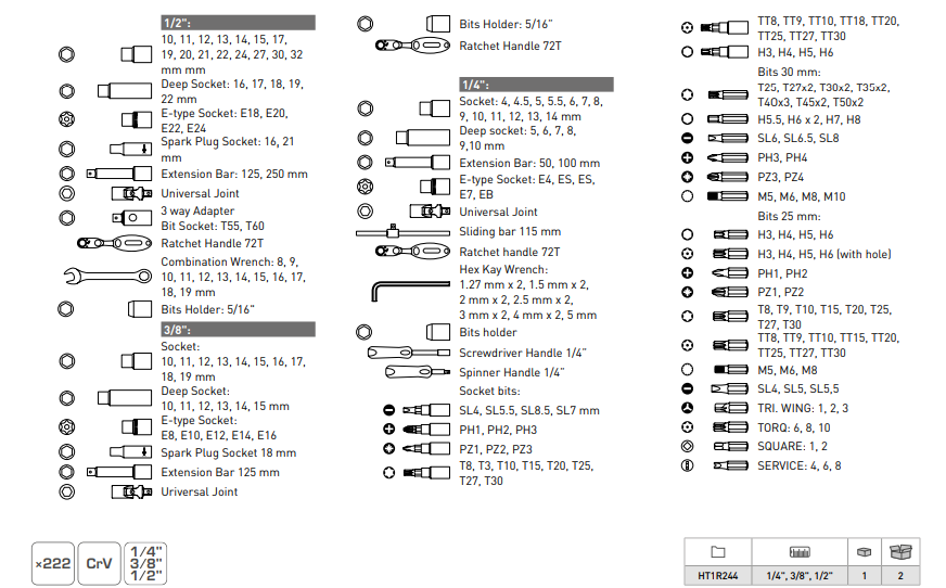 طقم طرطيقة وبكسات قياس مشكل 222 قطعة صندوق اسود