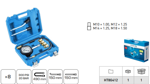 اسم المنتج طقم فحص كموبريشن بنزين 3-20 بار 8 قطع