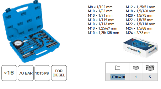 اسم المنتج طقم فحص ديزل كومبربيشن زيت (ضغط زيت) 16 قطعة