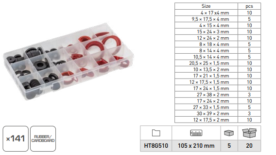 اسم المنتج طقم رنديلات مطاط وكرتون لانظمة الماء 141 قطعة