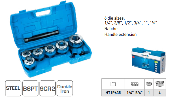 طقم تسنين مواسير يدوي 1/4"-5/4"